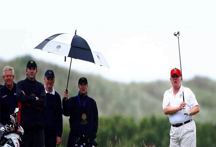 وبحسب وكالة "رويترز" فإن ترامب خلال وجوده في بريطانيا الشهر الجاري، زار منتجعه الآخر في تيرنبيري حيث لعب جولتي غولف.