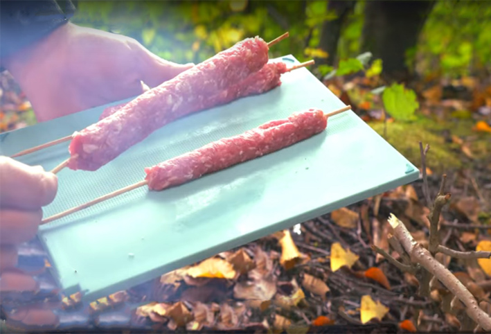 وأظهر صاحب الفيديو طريقة جديدة بمساعدة ابتكار يدوي الصنع لتسهيل عملية تحظير الكباب، حيث تكون الابتكار من زجاجة بلاستيكية وعلبة ألمنيوم وأسياخ خشبية.