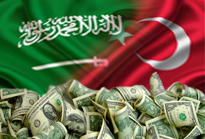 وبحسب مصدر تركي مقرب من أردوغان، فإن الأمير السعودي خالد الفيصل المبعوث الشخصي للعاهل السعودي الملك سلمان بن عبدالعزيز، عرض على أردوغان مساعدات مالية واستثمارات لمساعدة الاقتصاد التركي المتعثر، وأيضاً رفع الحصار عن دولة قطر، مقابل إغلاق ملف خاشقجي.